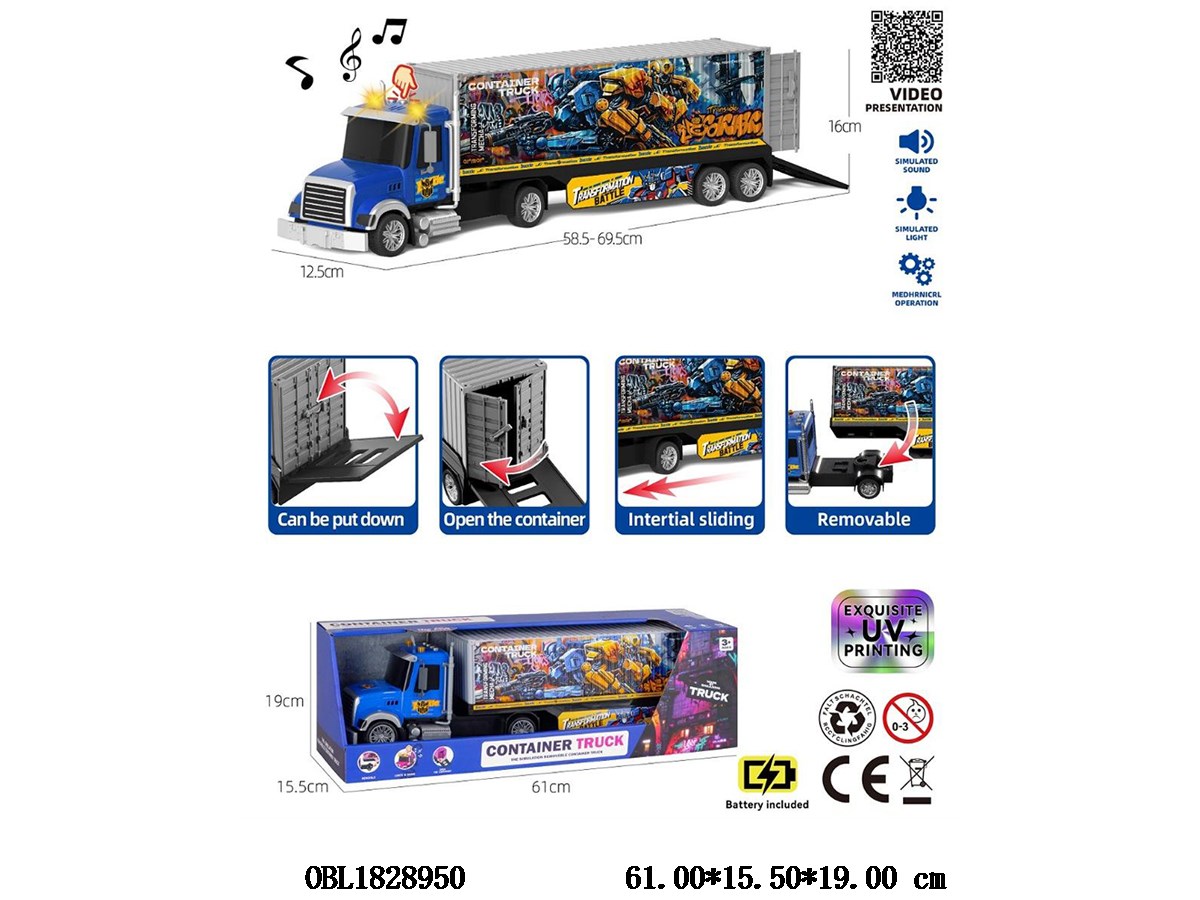 Home > F/P Car > Inertial container transport vehicle with sound and light 3 * AG13 package electricity