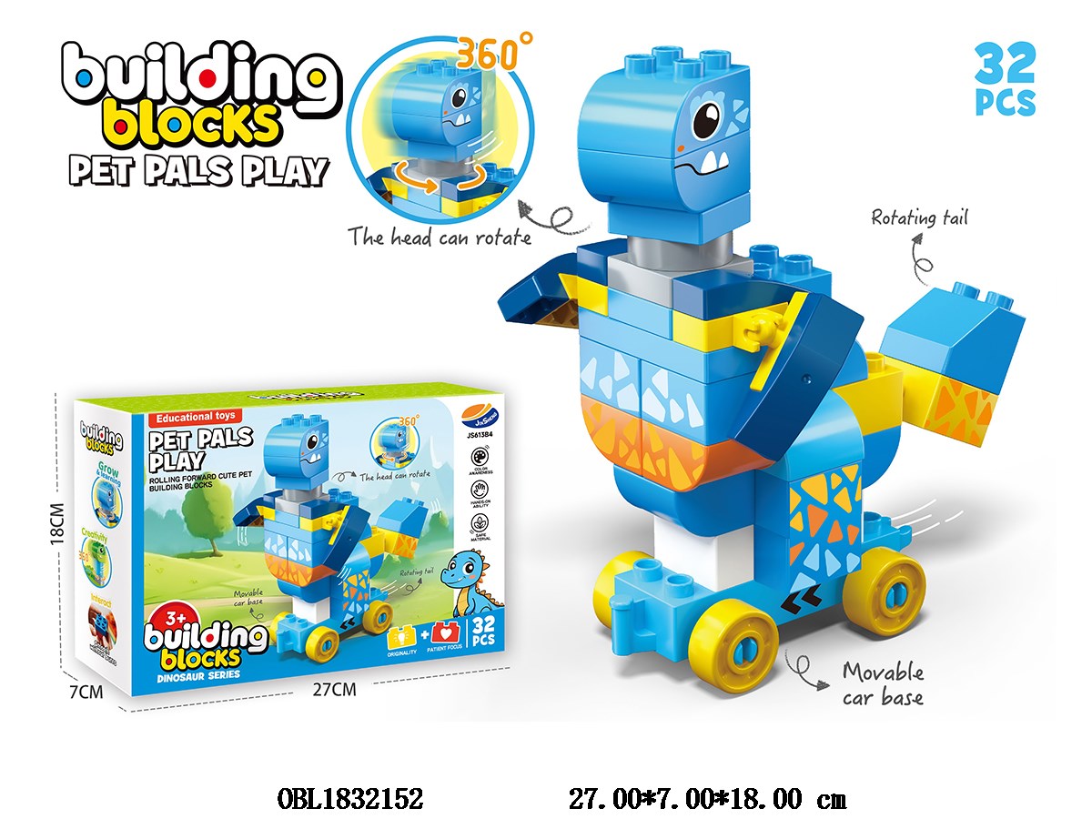 Home > Common Building Blocks > Puzzle Building Blocks Cute Pet Rotating Dinosaur Sliding Car 32PCS