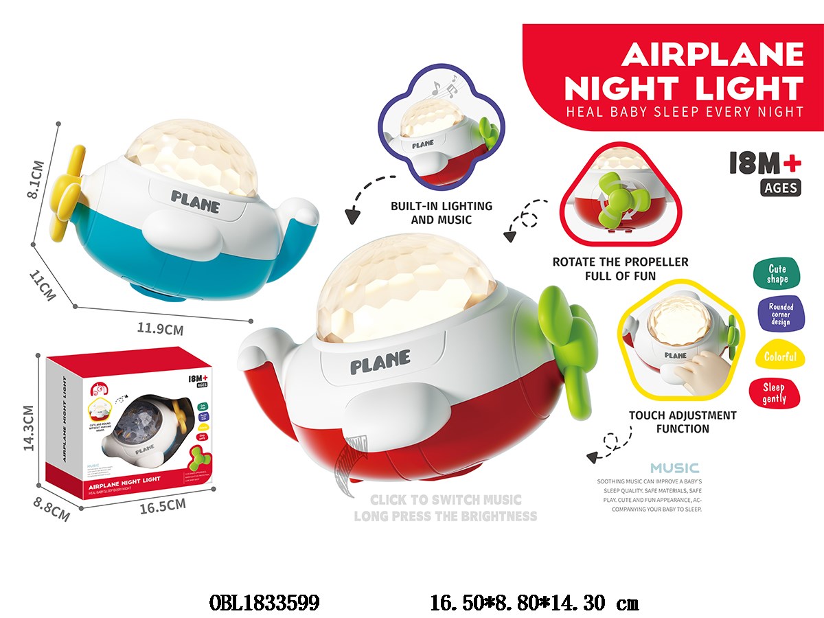 Touch projection airplane with lights, music, 2 colors mixed, 3 * AAA, no electricity included