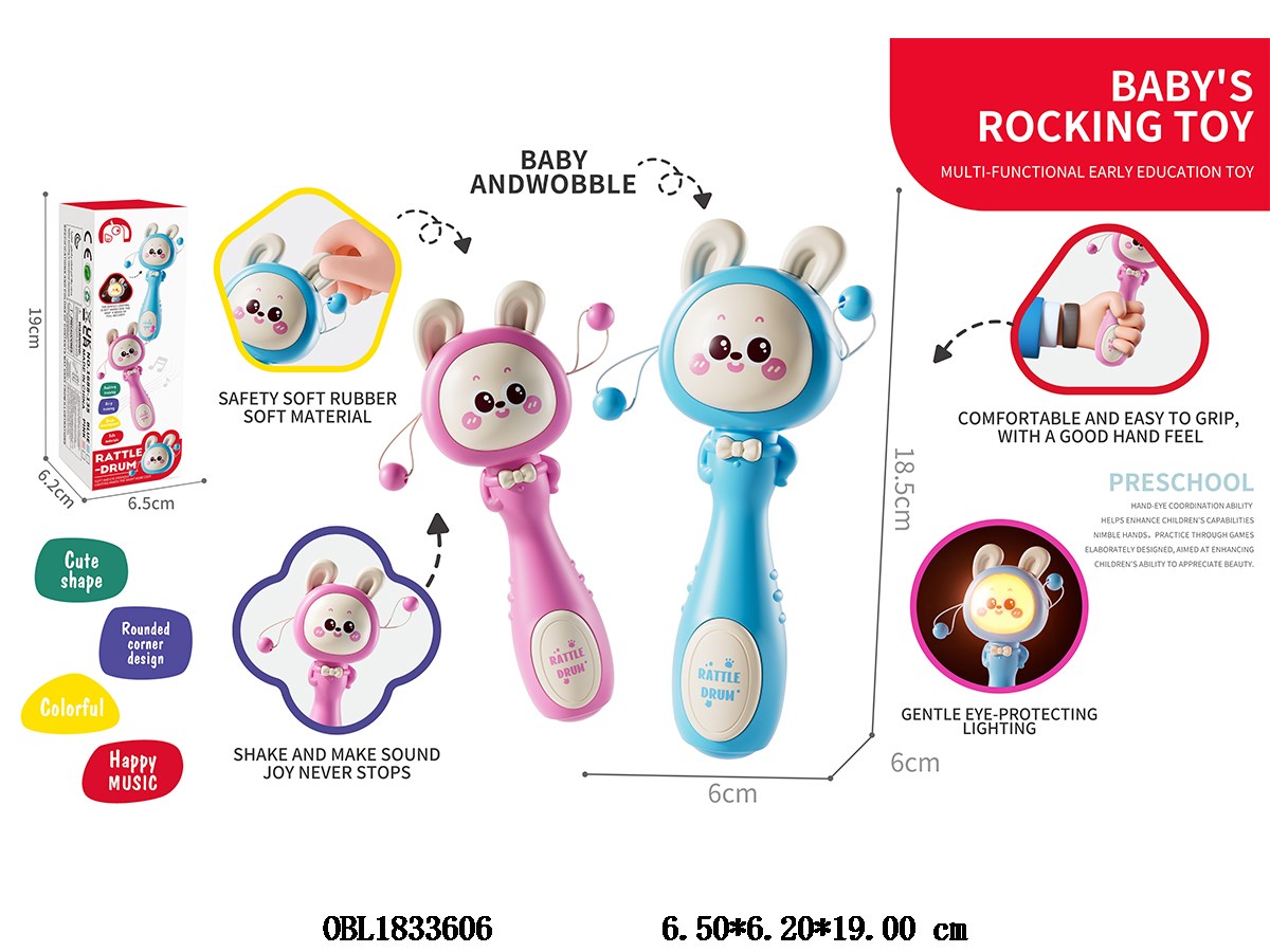 Home > Wave Drum > Rabbit tambourine with light, music, 2 colors mixed, 2 * AAA, no electricity included