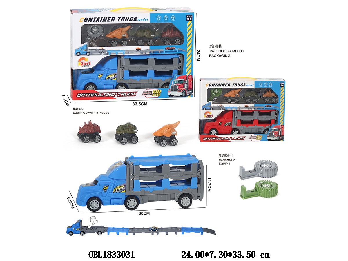 Home > Free Wheel Car > Sliding transport vehicle with 3 regenerative dinosaur vehicles, 1 catapult, and 2 mixed models