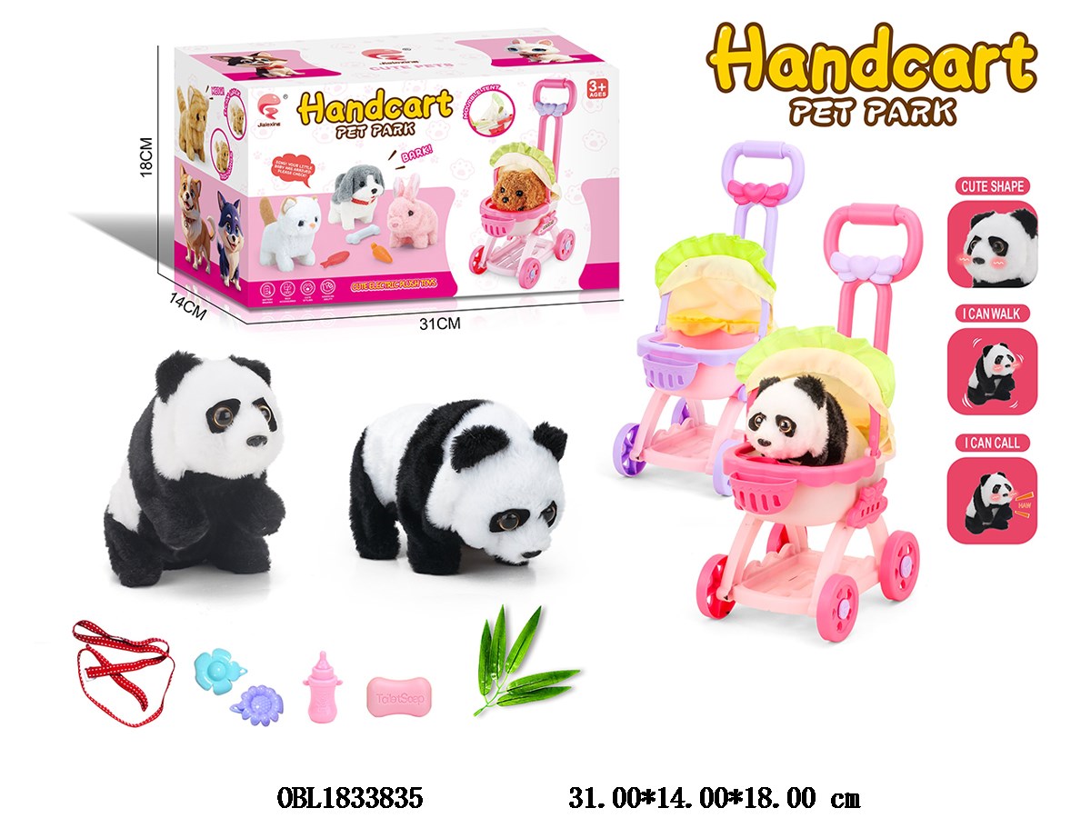 Home > B/O Animal > Electric walking panda stroller set with calling sound 2 * AA, not including electric stroller 2 color mixed packaging