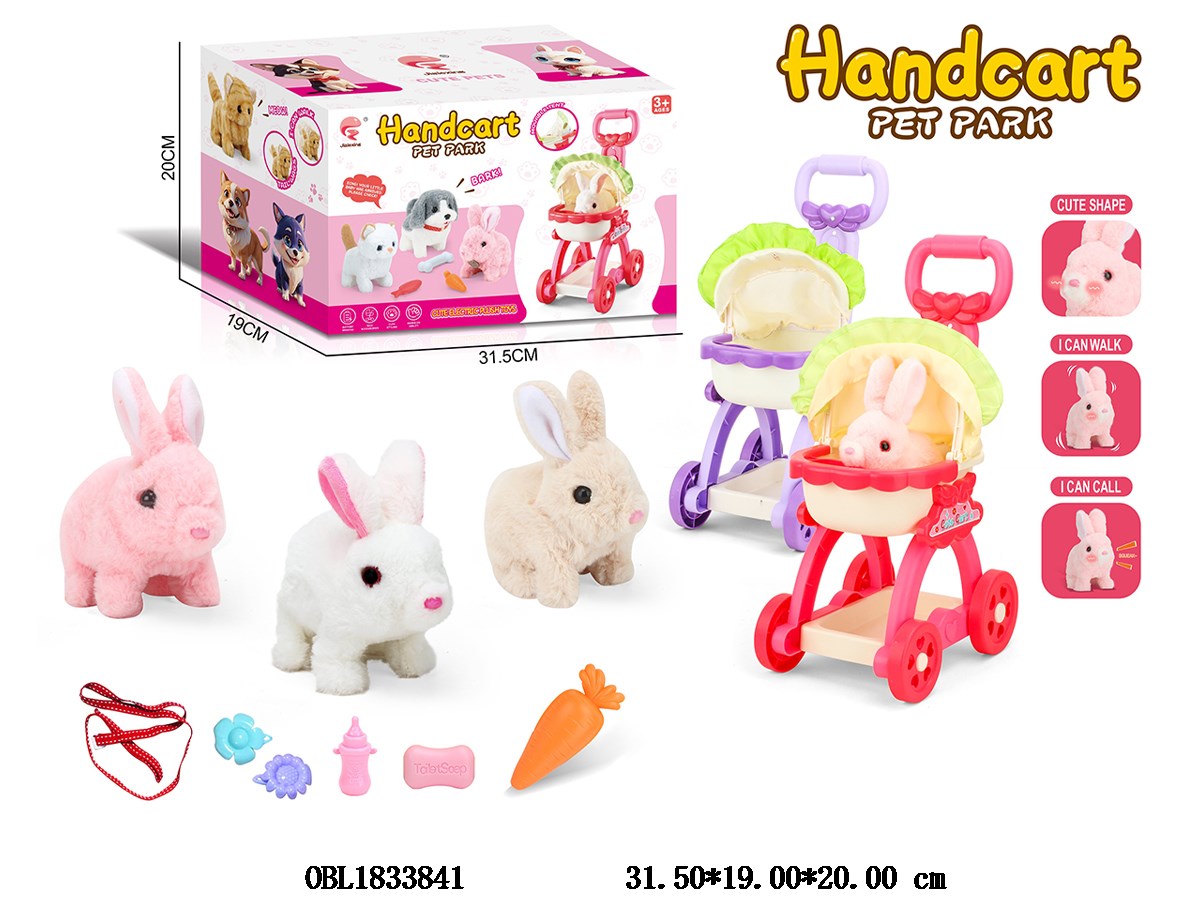 Electric walking cute rabbit cart set with sound 2 * AA, not including electric rabbit 3 mixed carts 2 color mixed carts