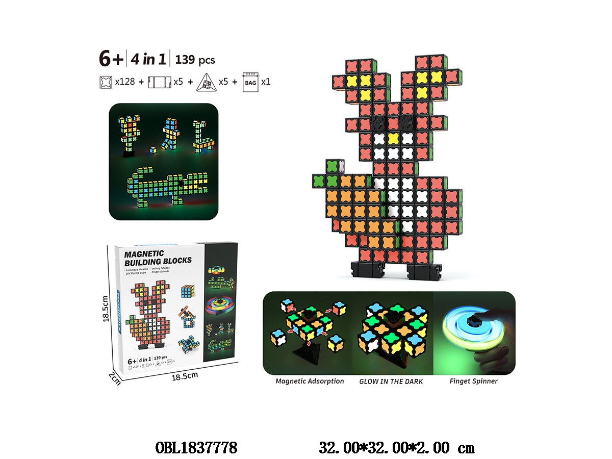 Puzzle blocks, luminous magnetic blocks, 128PCS with magnetic rotator
