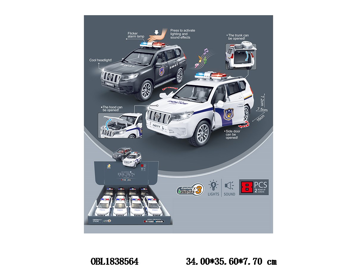 Home > F/P Car > Inertial off-road vehicle with lighting, music, 3 * AG13, electric package, 8 units, one display box