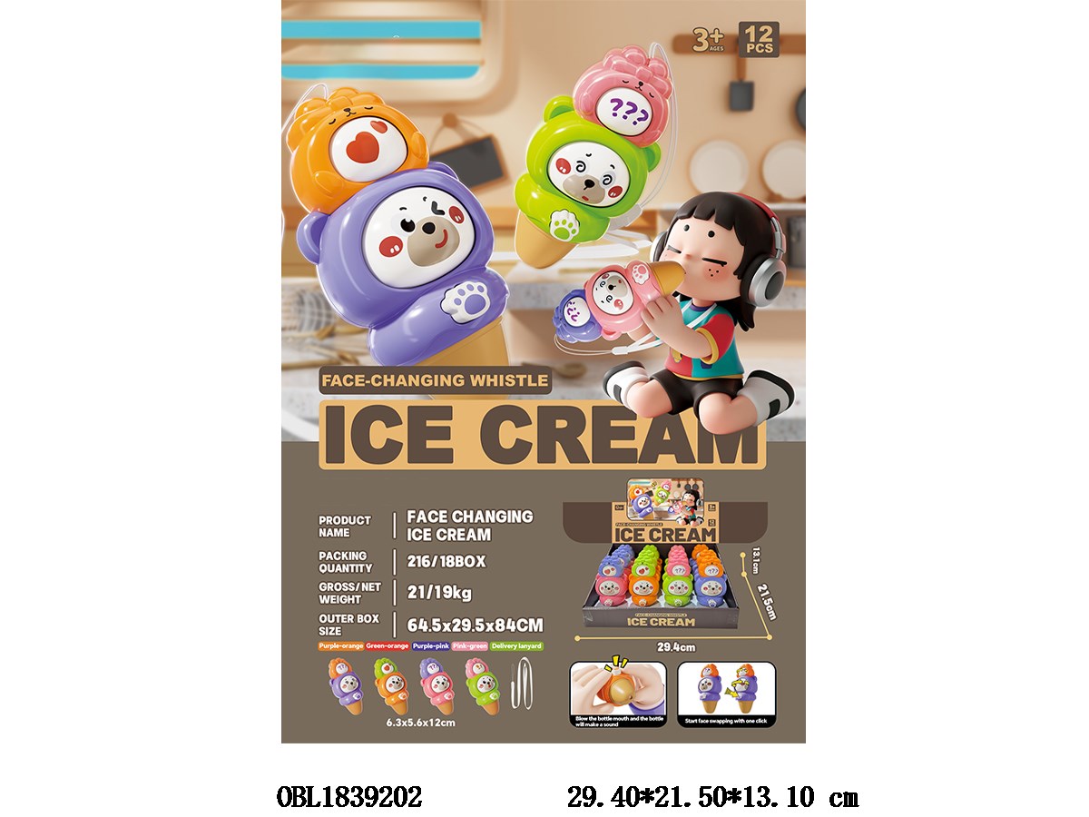 Whistle face changing ice cream 4 mixed packages, 12 pieces, 1 display box