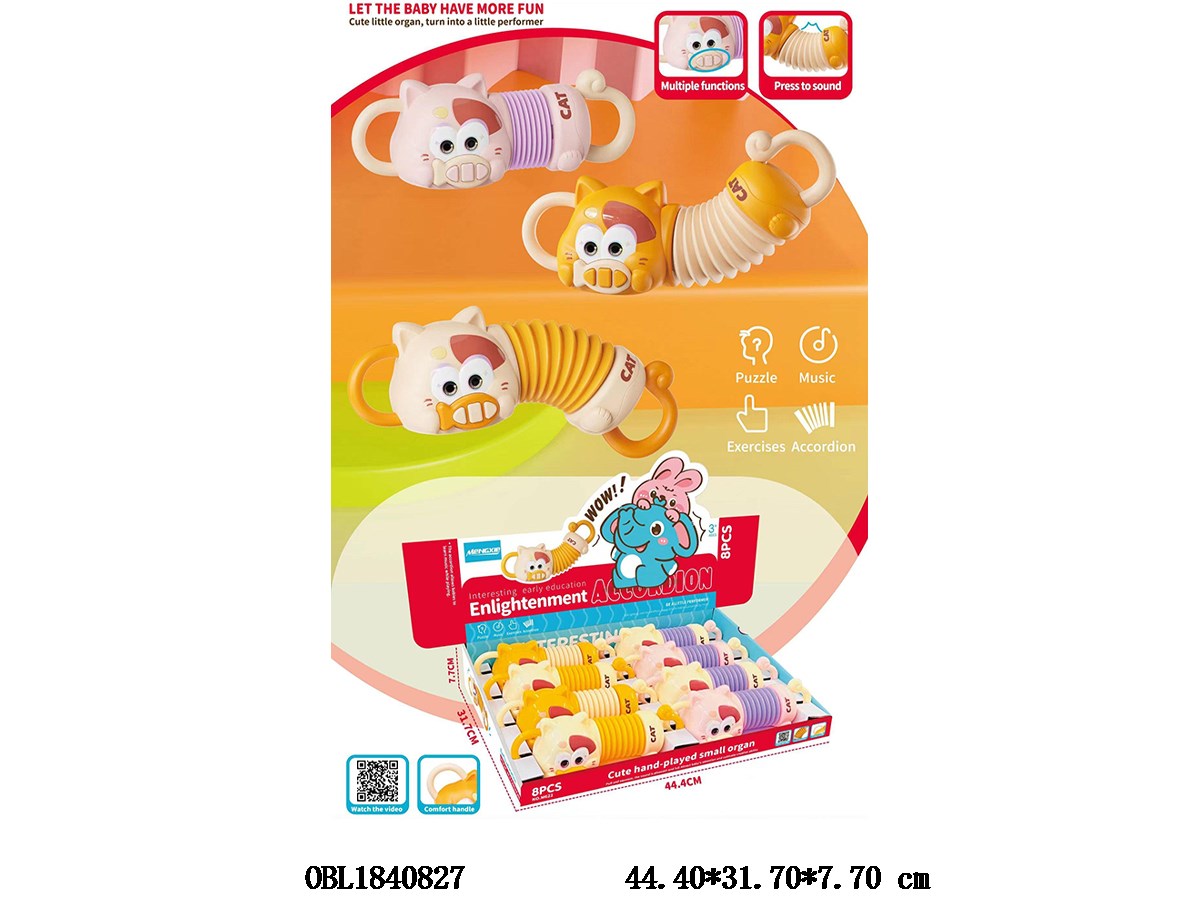 Cat accordion with lighting, music, 4 colors mixed, 2 * AAA, no electricity included, 8 packs, 1 display box