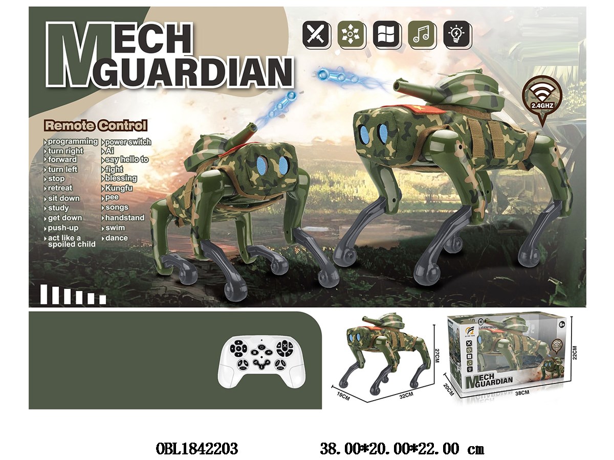 Home > R/C Animals > 21 channel multifunctional remote control machine dog with music programming AI voice and camouflage jacket with USB cable body 3.7V lithium battery included remote control 2 * AAA non included 2.4G frequency