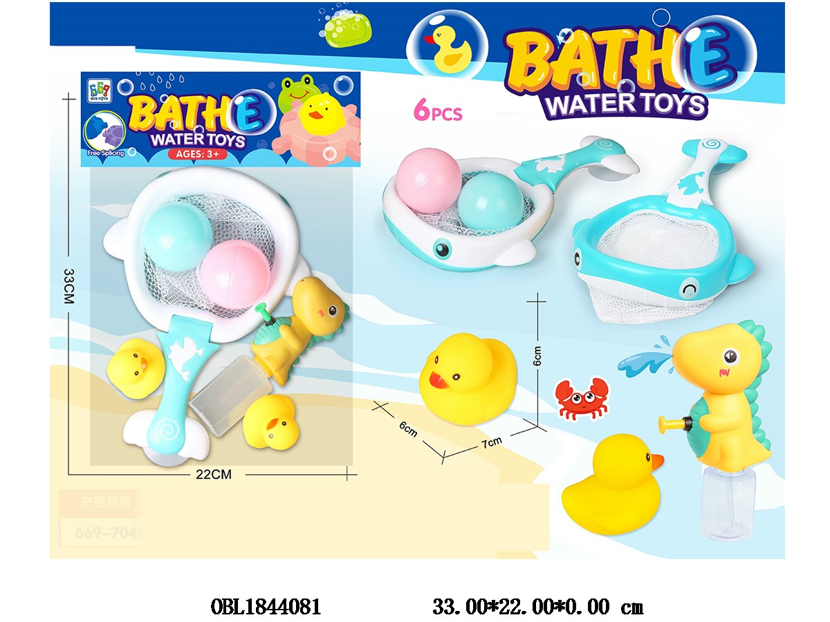 Duck Fishing Set with Dinosaur Water Gun Net Fishing 2 Colors Mixed