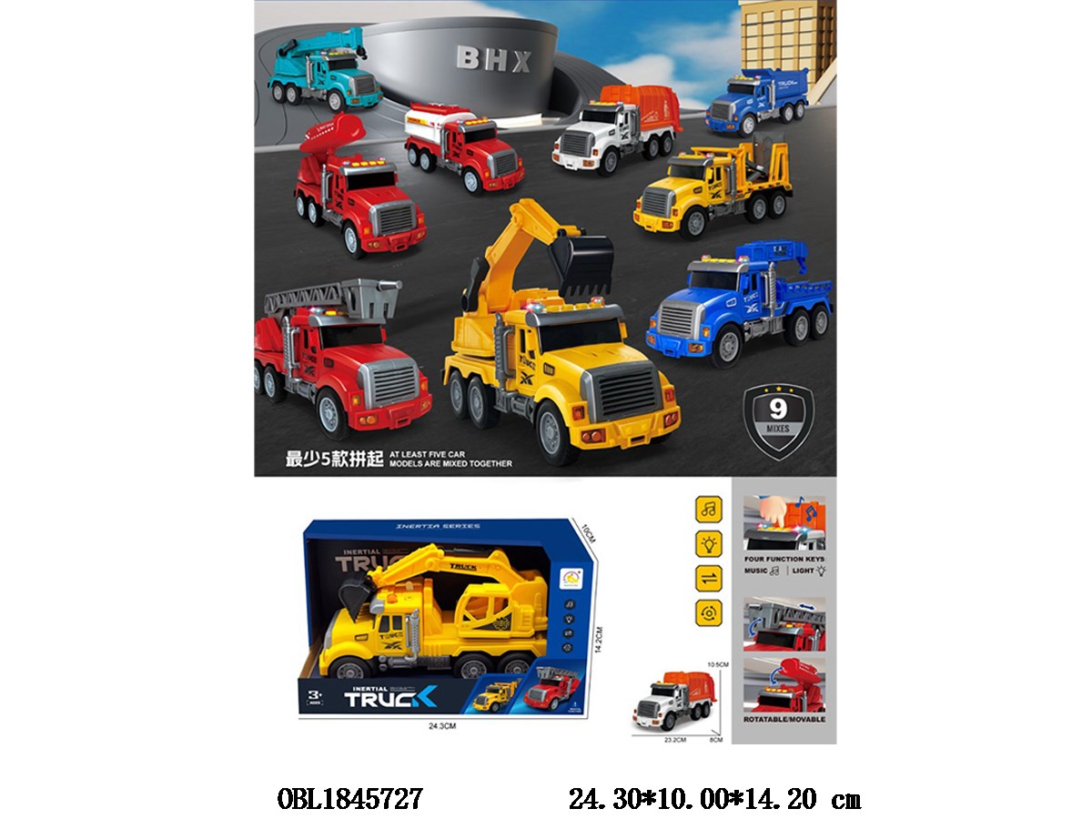 Inertial engineering vehicle with lighting, sound, 3 * AG13, electric package, 9 randomly mixed models