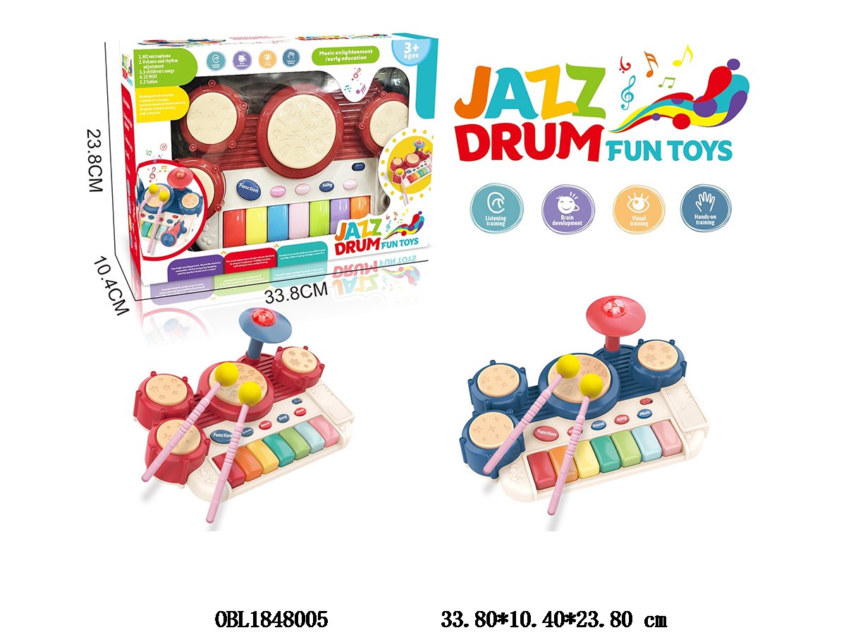 Jazz drum with lighting, music, 2 colors mixed, 3 * AA, no electricity included