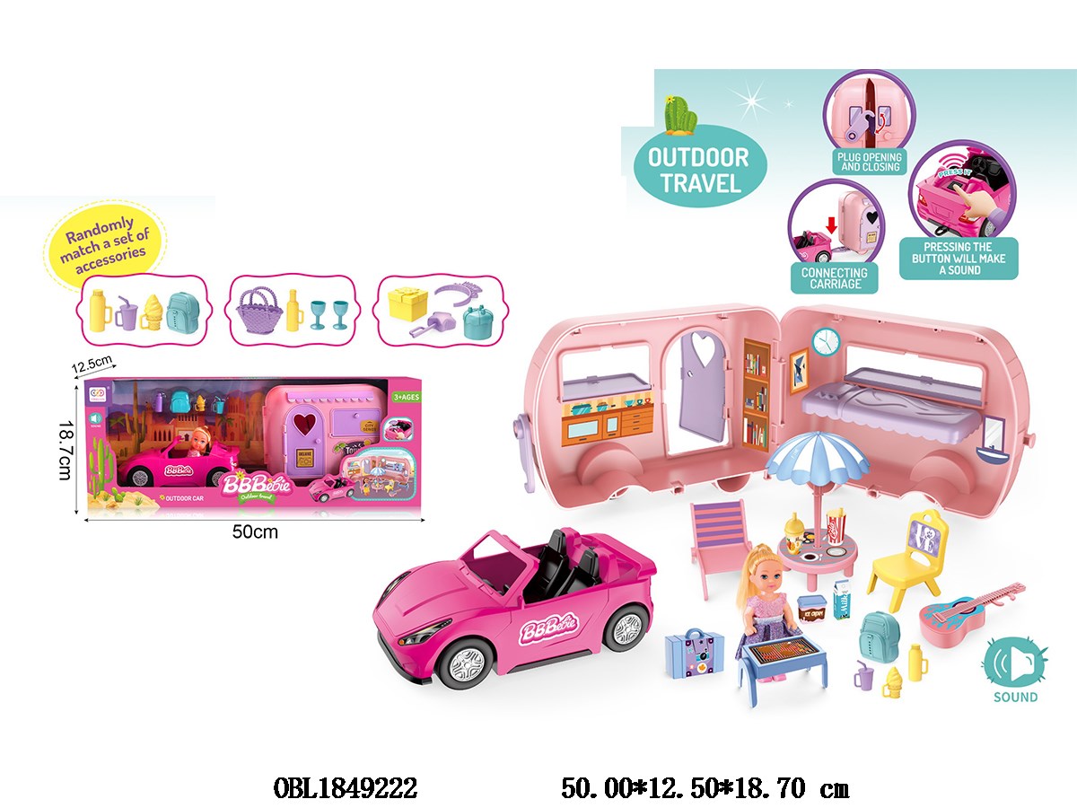 Sliding camping car set with 4.5-inch solid body Barbie with sound, 3 * AG13 package with electricity