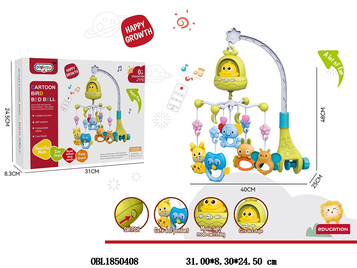 Remote control bird s nest bedside bell with lighting, music, 3 * AA, no power included. Remote control 1 * CR2025, power included