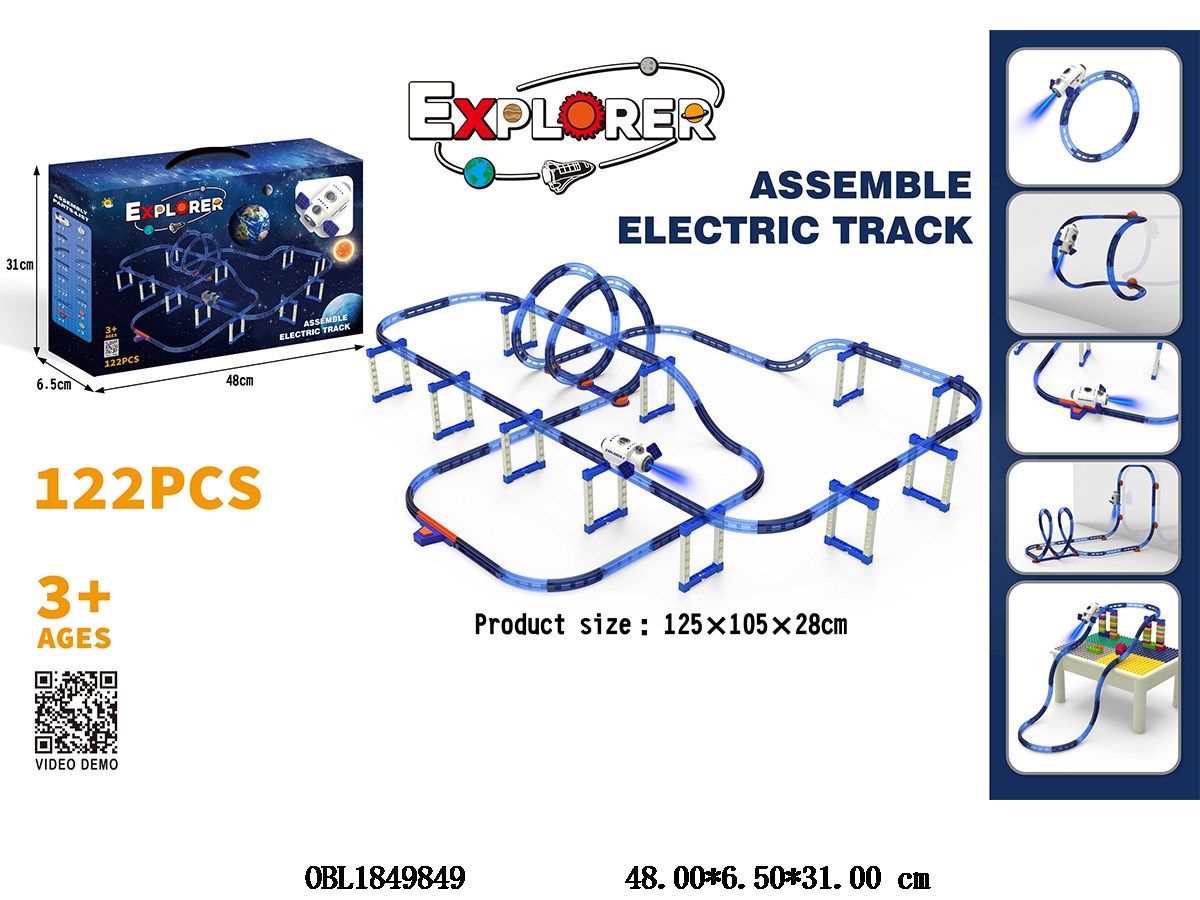 DIY space spray building block electric track suit 3 * AAA, 122PCS without electricity