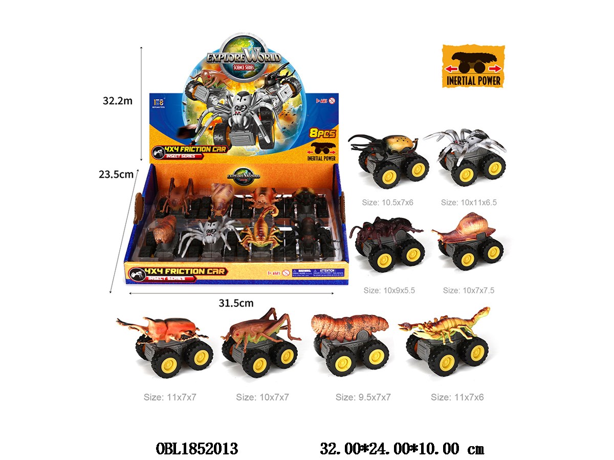 Dual inertia insect car, 8 mixed models, 8 pieces per display box