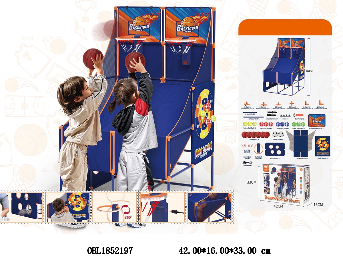 Double basketball hoop set with USB cable 6 * AAA, no power included