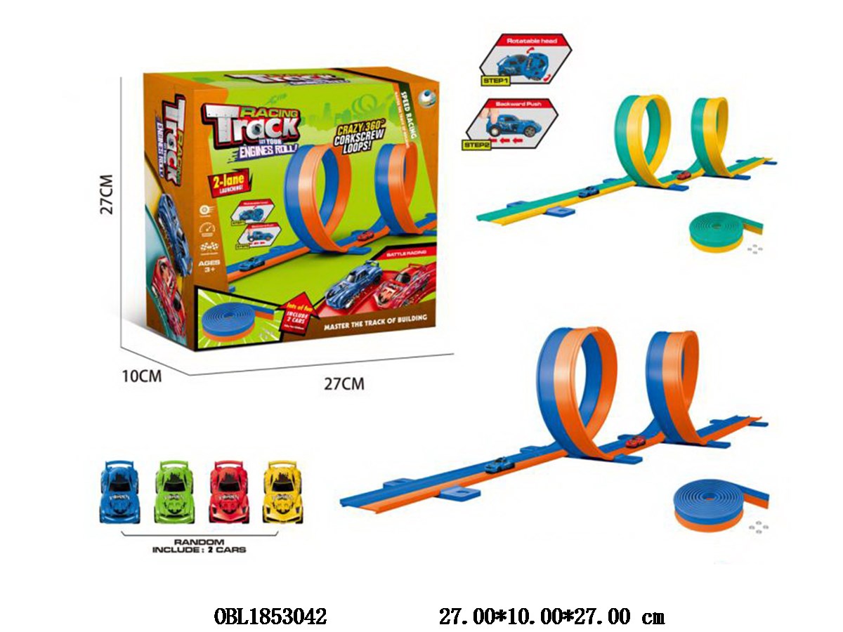 Return track car set comes with 2 randomly selected rotating return cars and a mixed color of 2 colors