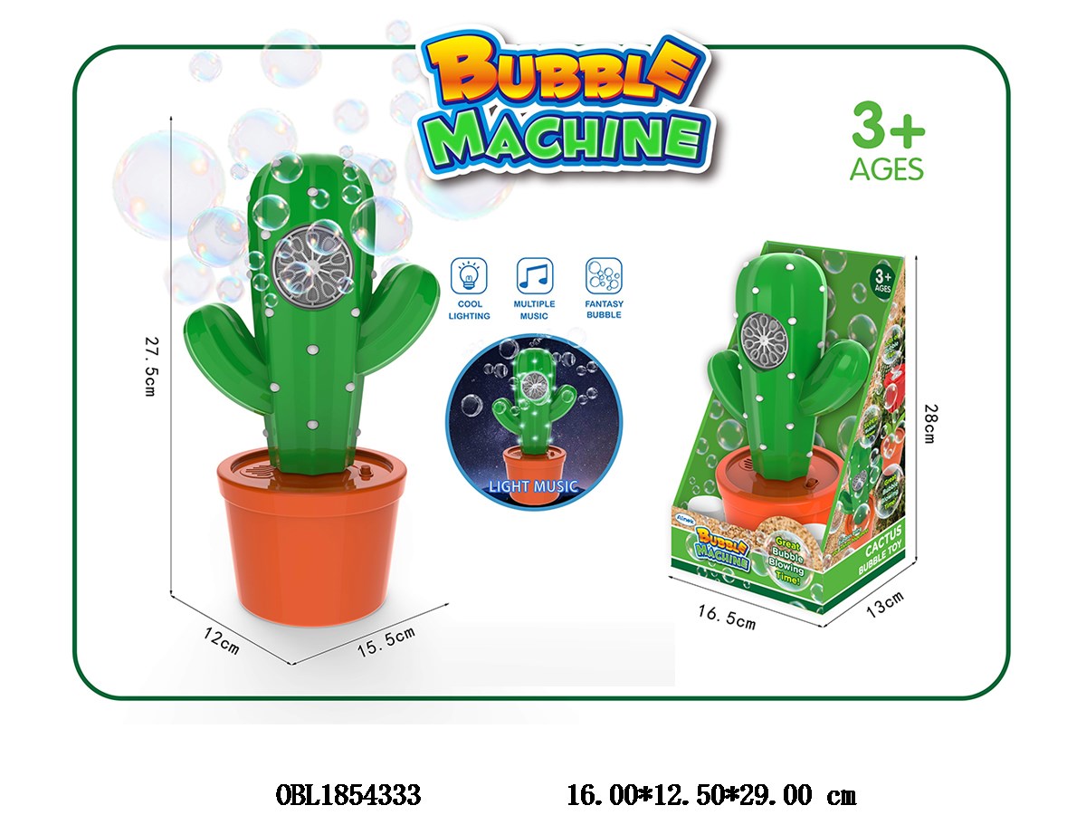 Home > Friction Bubbles Gun > Electric Cactus Bubble Machine with Light and Music, Comes with 2 Bottles of 40ml Bubble Water 3 * AA, Power Not Included