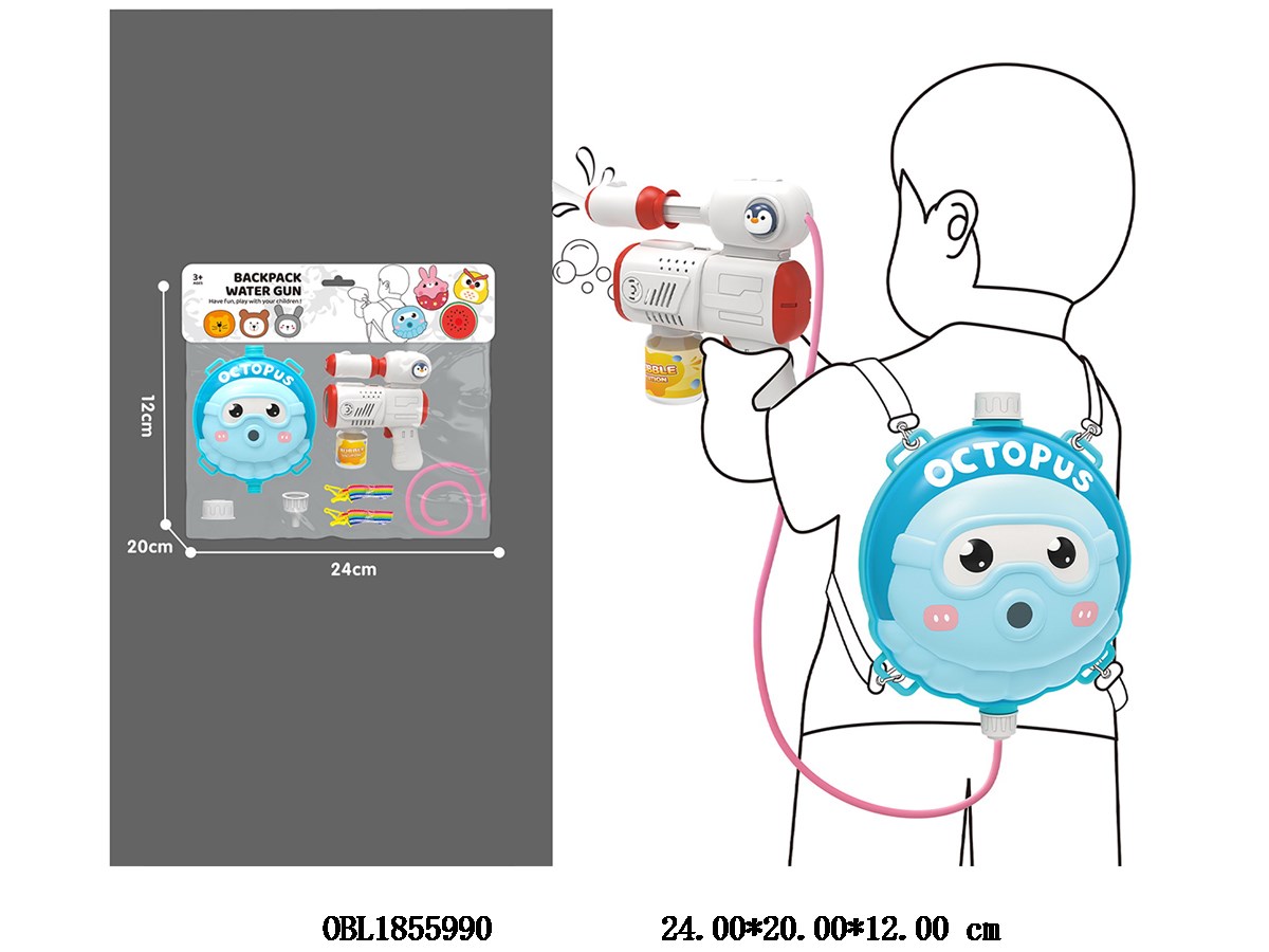 Home > Friction Bubbles Gun > 2-in-1 electric bubble gun/backpack water gun bubble water 90ml capacity 1.5L 4 * AA without power