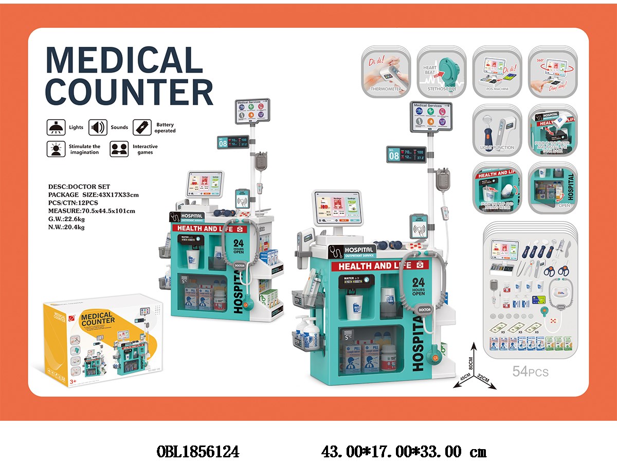 Home > Medical Sets > Medical table set with lighting, sound, manual water outlet, 2 * AG10 with power, 2 * AG13 with power, 2 * AAA without power, 2 * AA without power