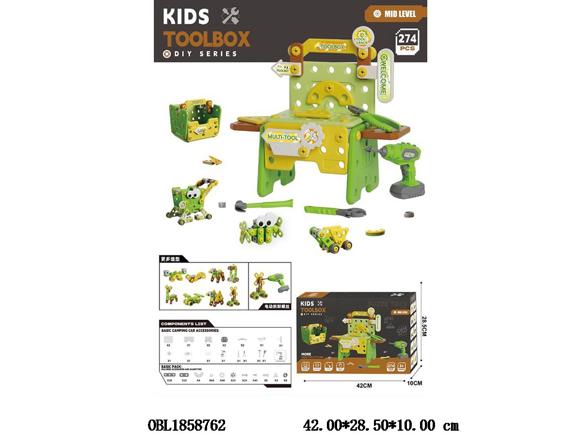 Home > Common Building Blocks > Puzzle assembly screw building block set, power distribution drill 2 * AA, no electricity included 277PCS