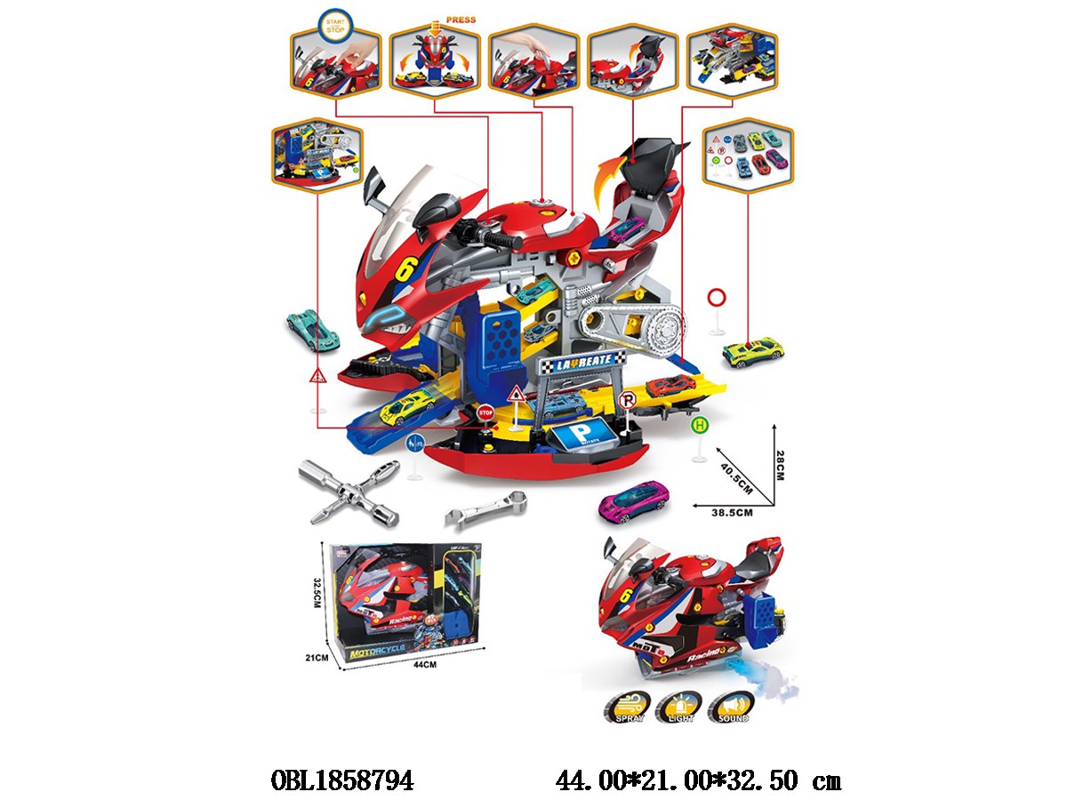 Home > Disassembling Motorcycle > DIY assembled motorcycle/engine package with light and sound effect spray engine 3 * AG13 electric car 3 * AAA electric car not included