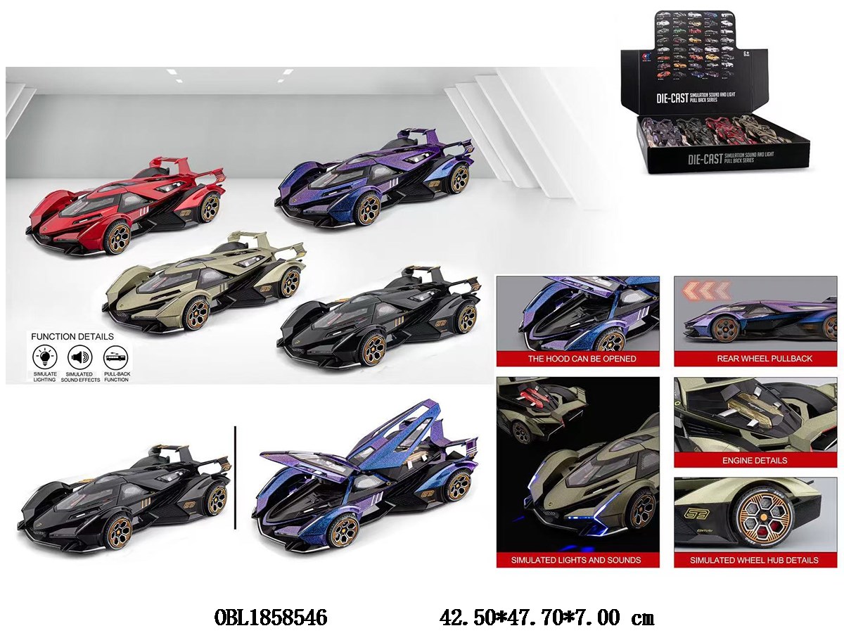 Home > Die-Cast Car > 1: 24 alloy regenerative car with lighting and sound effects 3 * AG13, including electricity, 4 colors mixed, 8 pieces, 1 display box