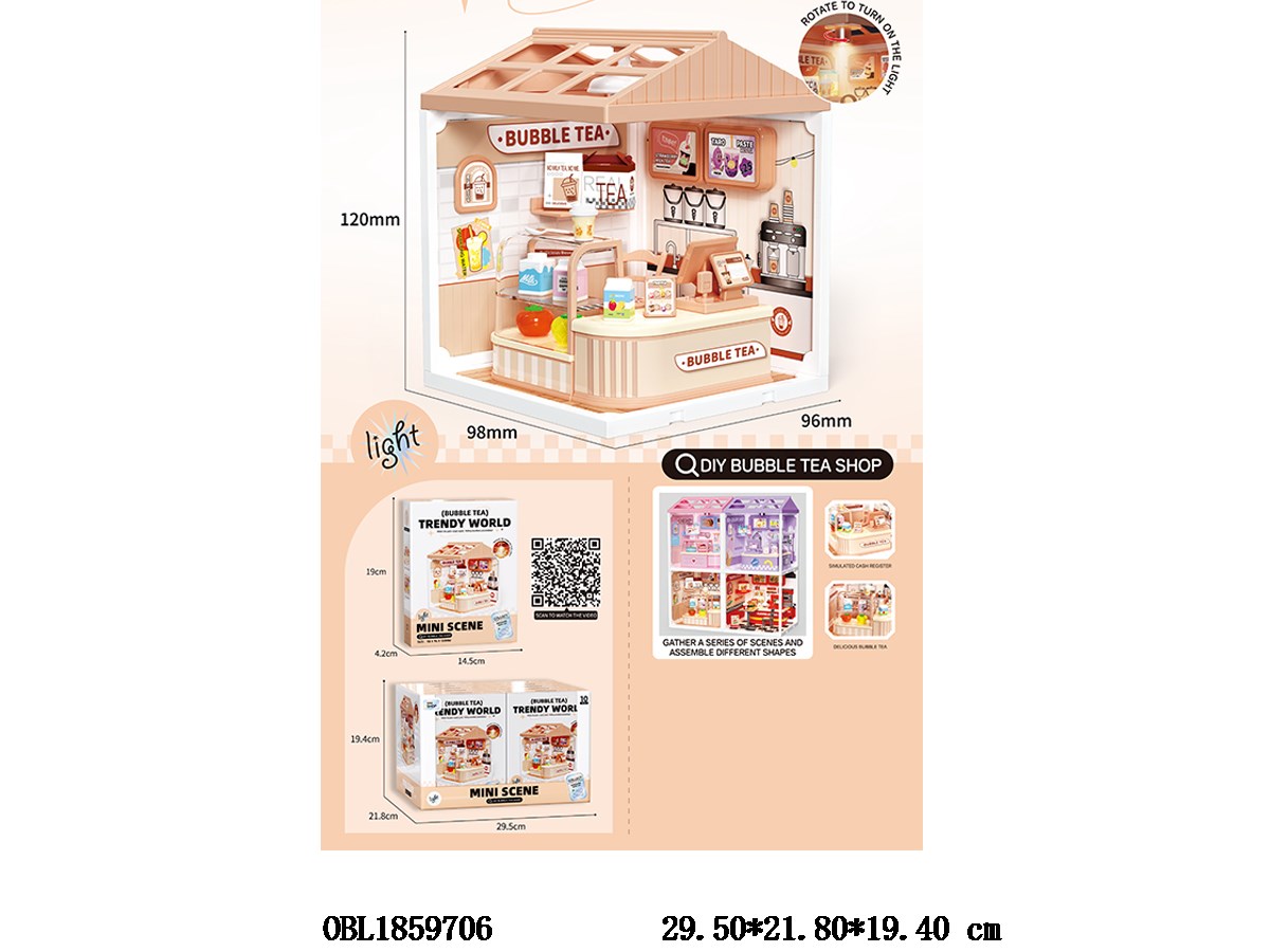 DIY Milk Tea Shop Miniature Scene Set with 3 * AG3 Lighting Package, 10 Small Boxes, 1 Display Box