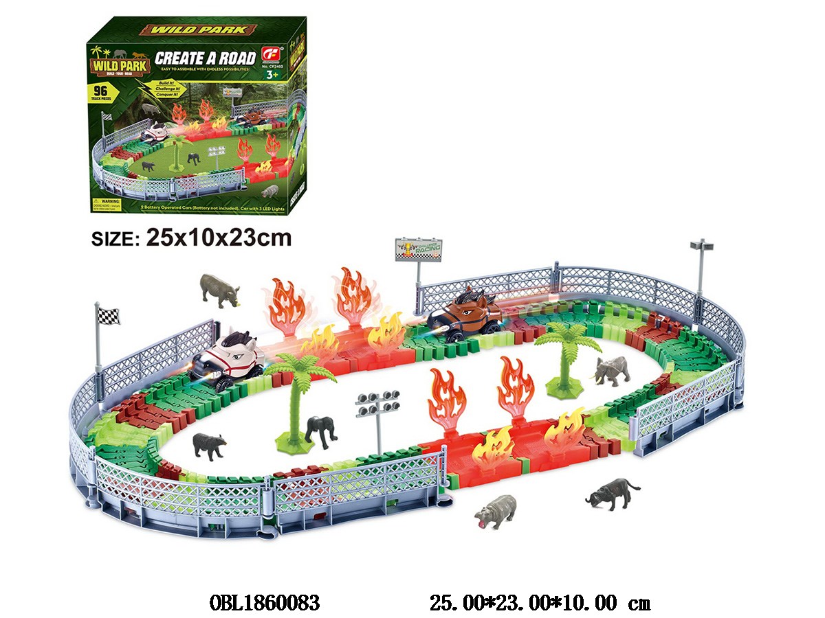 Electric building block track car set with 2 cars and 1 * AA each with lights, not including electricity
