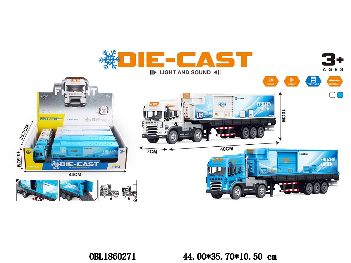 Home > Die-Cast Car > Alloy inertia cold chain car with light and sound 3 * AG13 package, electric, 2 colors mixed, 4 pieces per display box