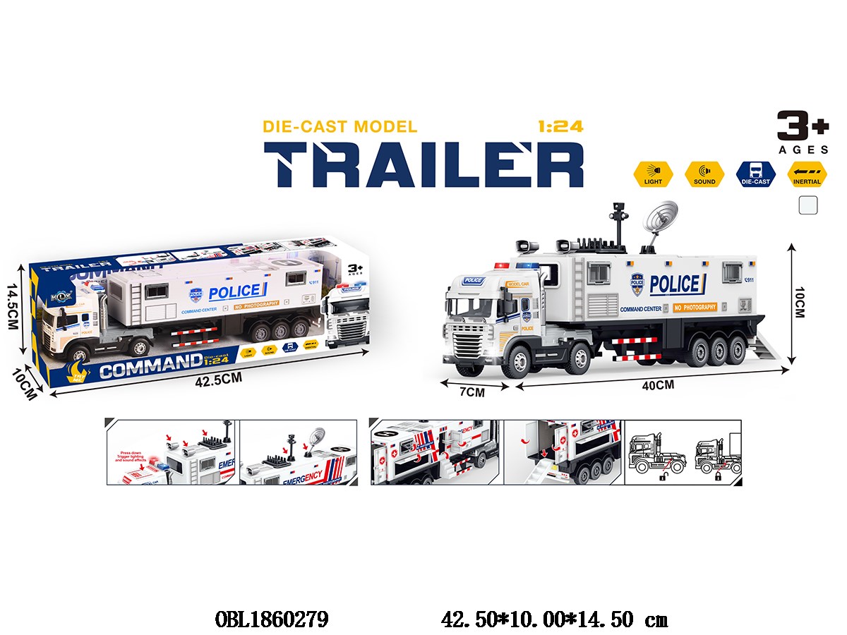 Alloy Inertial Police Command Vehicle with Light and Sound 3 * AG13 Package Electricity