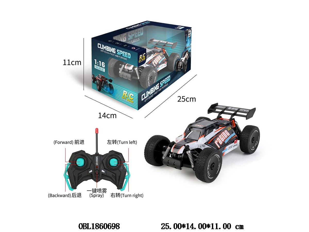 Home > R/C Car > 1: 18 remote control racing car with light spray body 3 * AA without electric remote control 2 * AA without electric control 40 frequency 2-color mixed packaging