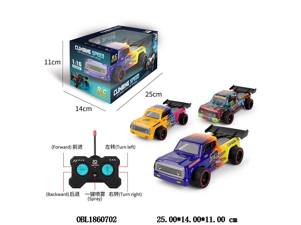 Home > R/C Car > 1: 18 remote control racing car with light spray body 3 * AA without electric remote control 2 * AA without electric control 40 frequency 2-color mixed packaging