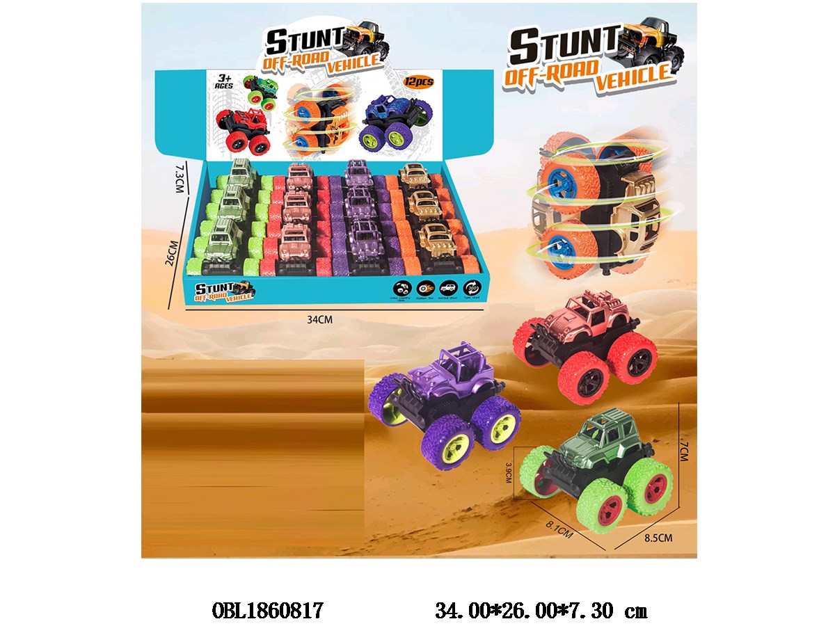 Inertial stunt car, 4 models, 4 colors mixed, 12 pieces per display box