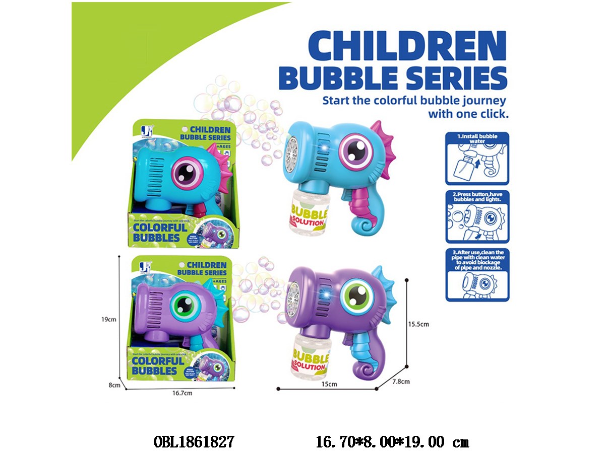 Home > Friction Bubbles Gun > Electric seahorse bubble gun with light, 4 * AA, no electricity included, 2 colors mixed