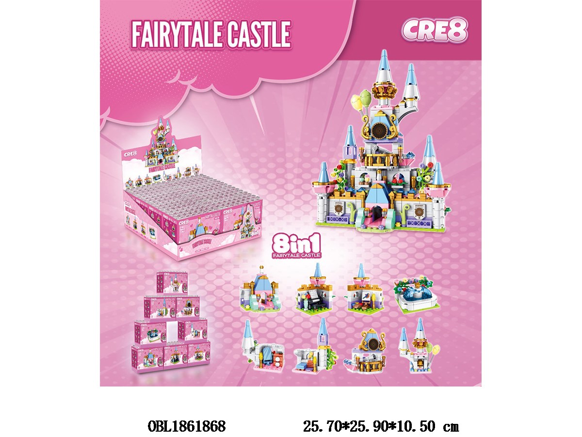 Puzzle building blocks, fairyland castle, 8-in-1, 8 mixed designs, 8 small boxes, 1 display box
