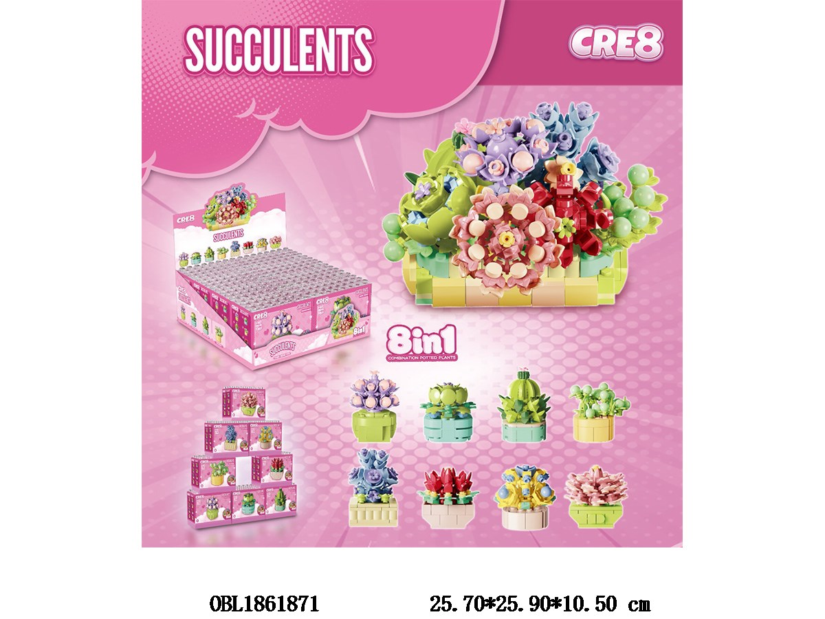 Puzzle building block succulent 8-in-1 8 mixed packaging 8 small boxes in one display box