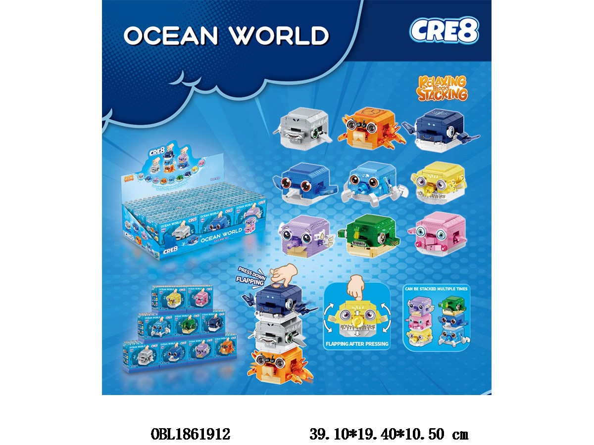 Puzzle building blocks, Ocean World, stacked high, 9 mixed designs, 9 small boxes, 1 display box