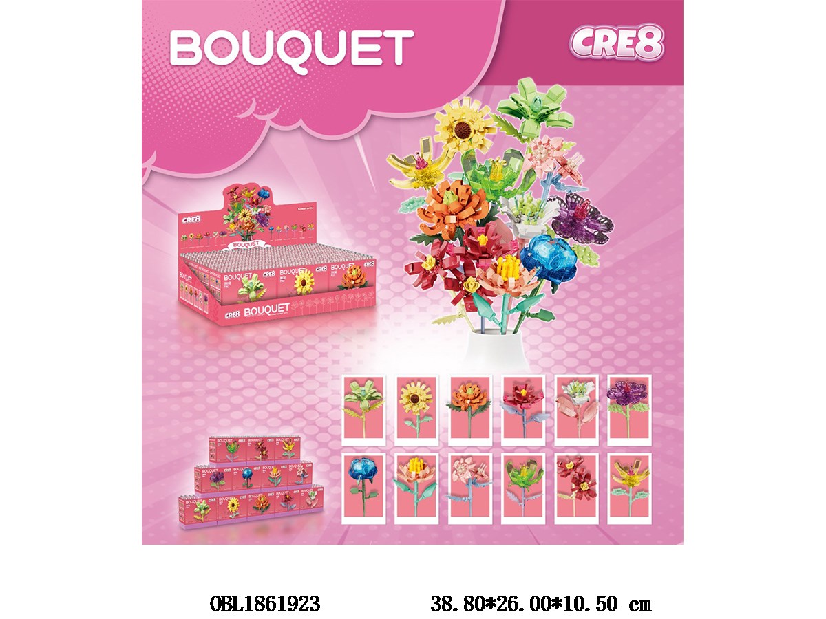 Home > Common Building Blocks > Puzzle building block bouquet with 12 mixed designs and 12 small boxes in one display box