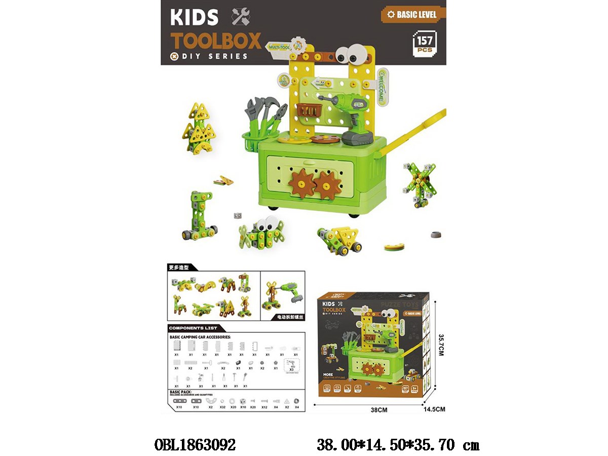 Puzzle assembly screw building block set, power distribution drill 2 * AA, no electricity included, 157PCS