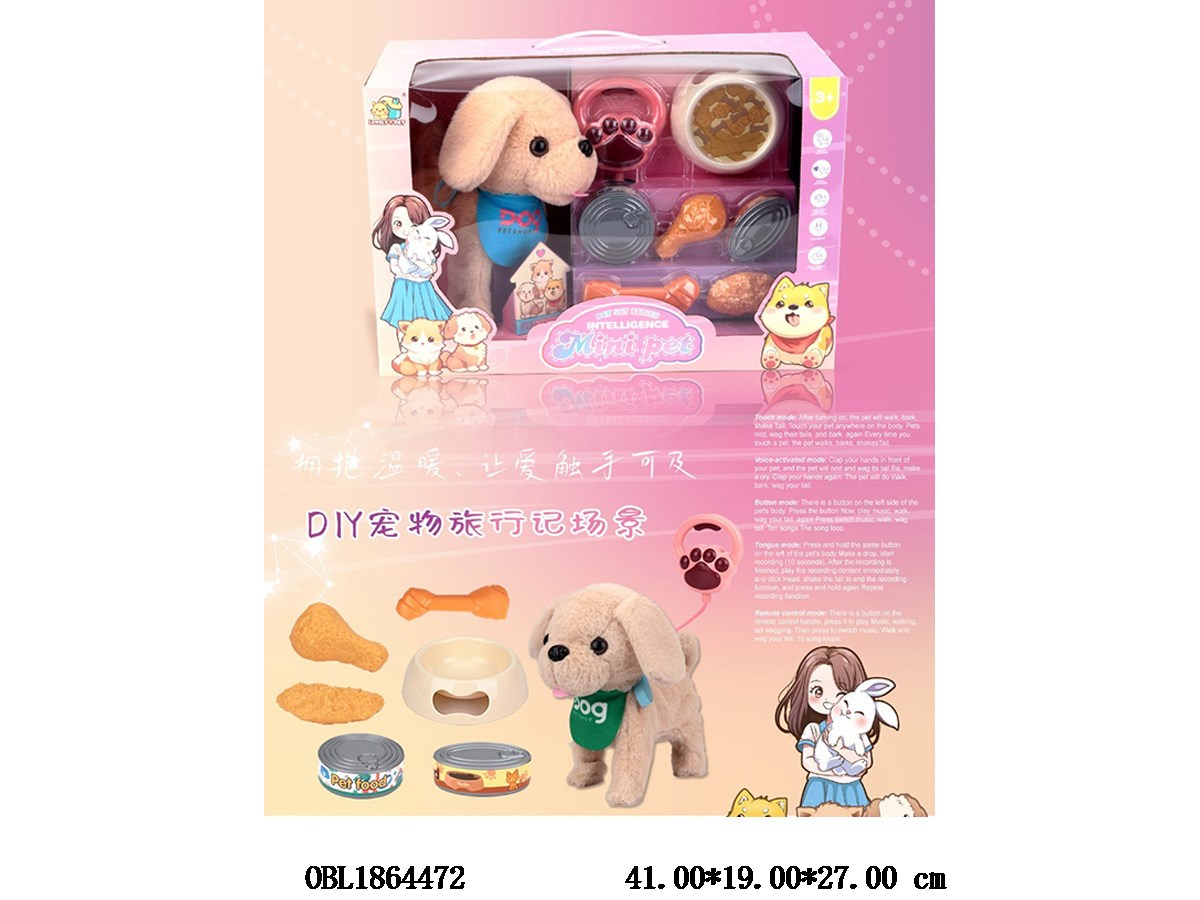 Intelligent wire controlled leash dog set with music, tongue control, voice control, 3 * AA, not included, electric hair cover, removable and washable