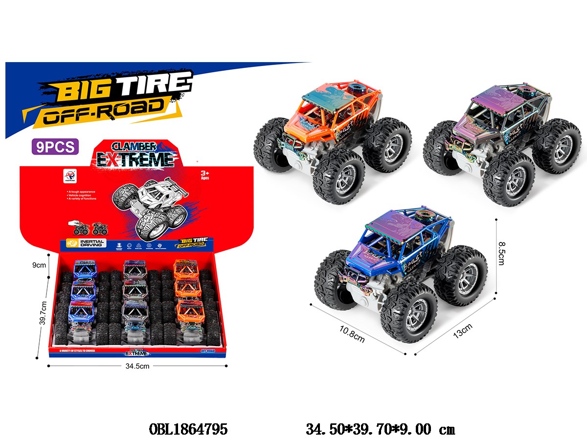 Spray coated inertia climbing car, mixed with 3 colors, 9 pieces per display box
