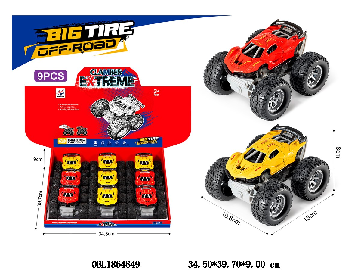 Alloy inertia car 2-color mixed packaging, 9 pieces per display box