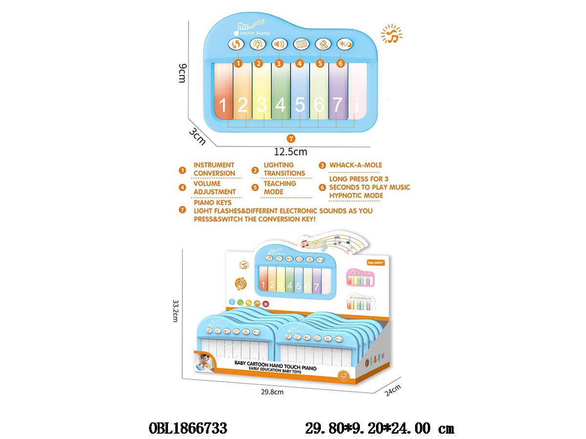 Multi functional touch color screen electronic keyboard with lighting, music, 3 * AAA, no power included, 12 pieces, 1 display box