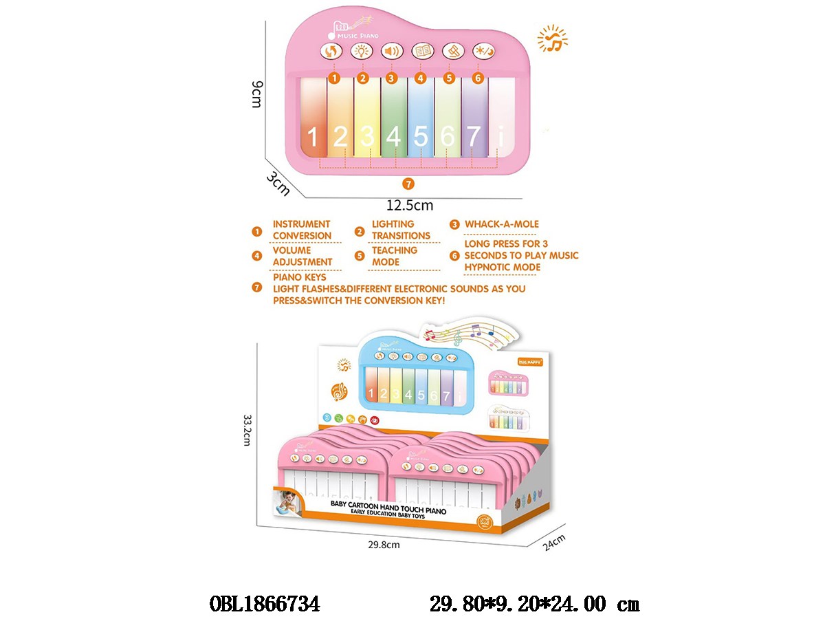 Multi functional touch color screen electronic keyboard with lighting, music, 3 * AAA, no power included, 12 pieces, 1 display box