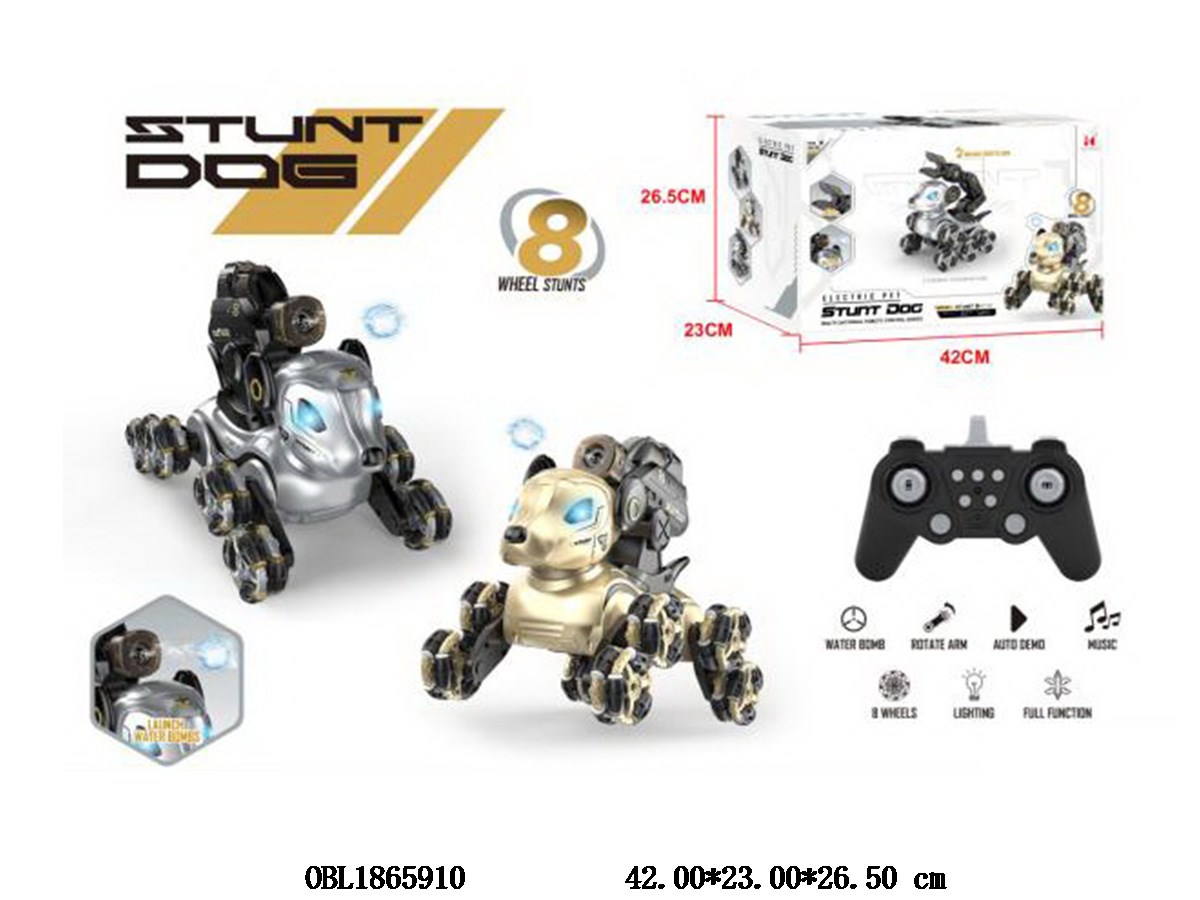 Remote control stunt mechanical dog with lights, music, water dispenser, USB cable, main body, 7.4V lithium battery, power included remote control 2 * AA, no power included, 2 colors mixed