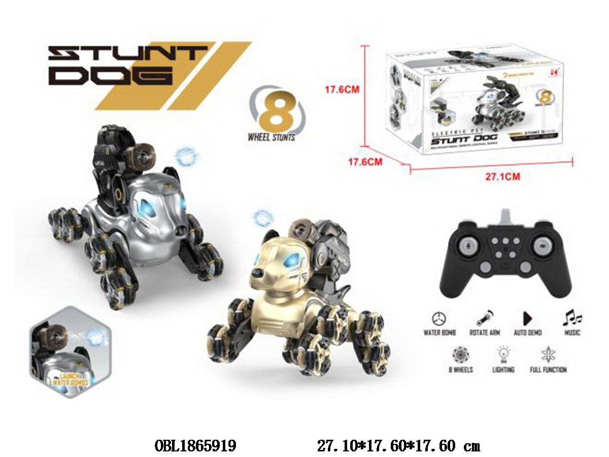 Remote control stunt mechanical dog with lights, music, water dispenser, USB cable, main body, 7.4V lithium battery, power included remote control 2 * AA, no power included, 2 colors mixed