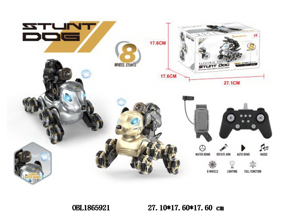 Home > R/C Animals > Dual remote control stunt mechanical dog with lights, music, water dispenser, USB cable, main body, 7.4V lithium battery, rechargeable remote control, 2 * AA non rechargeable watch remote control, 2 * AAA non rechargeable 2-color hybrid