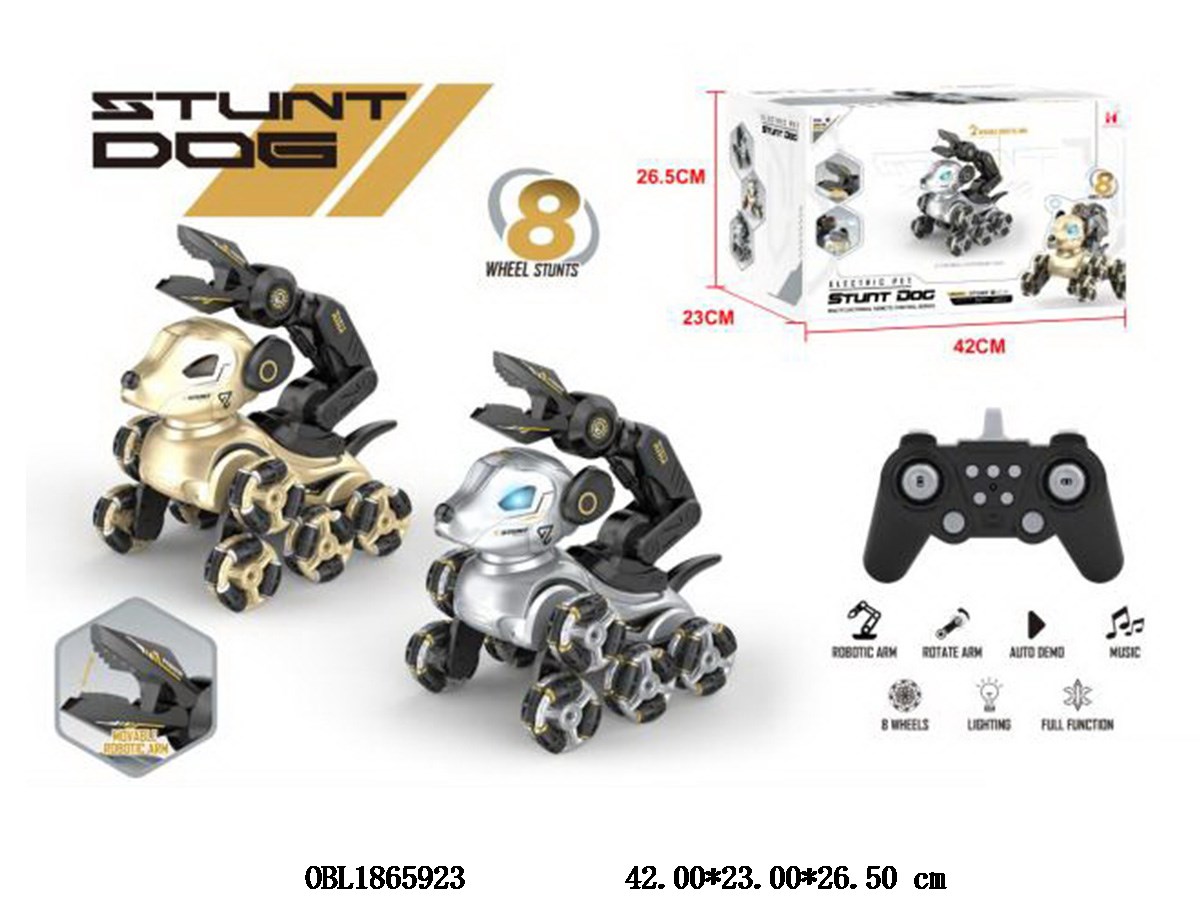 Remote control stunt mechanical dog with lights, music, clip on device, USB cable main body, 7.4V lithium battery included remote control, 2 * AA non included, 2 colors mixed