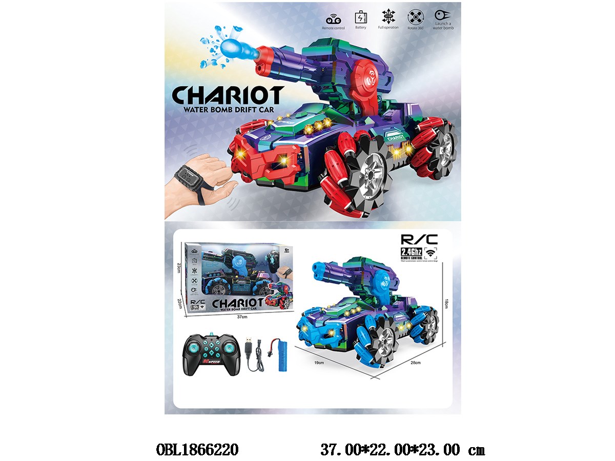 Dual remote control tank with lights, music, water dispenser, USB cable, body 3.7V lithium battery included remote control, 2 * AA non included remote control, watch remote control, 2 * AAA non included remote control, 2.4G frequency, 2 colors mixed